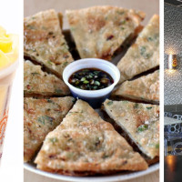 Crispy, flaky scallion pancakes served with chili soy sauce